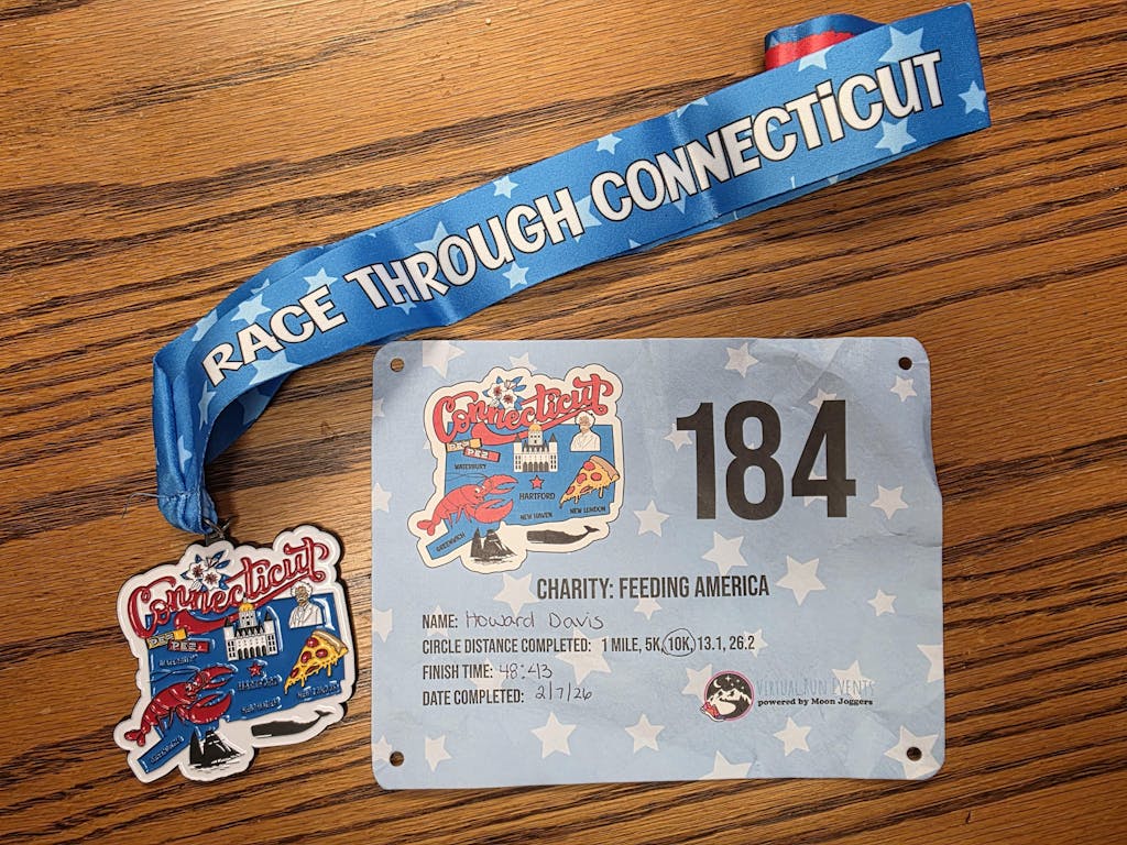Race Through Connecticut 1M 5K 10K 13.1 26.2 Medal and Bib